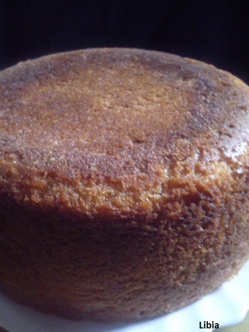 El bizcocho es el afamado bizcocho del convento, me salió super alto, más de 6 cm de altura, horneado en mi olla GM, pero que se puede hacer en cualquier horno, claro. Aquí una foto del bizcochito desnudo :D