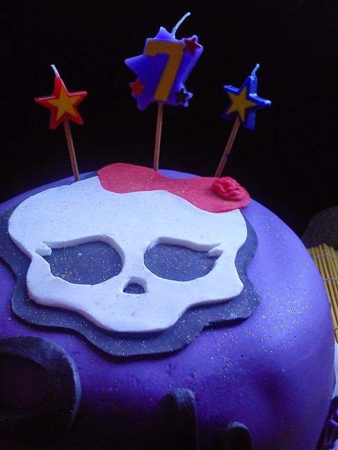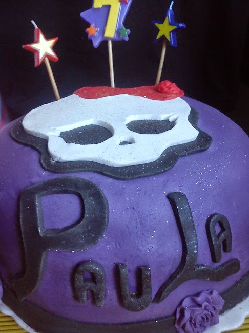 El tema de la tarta lo eligió ella, quería que fuera de las Monster High, esas muñecas monstruosas que causan furor entre nuestras pequeñas, y como tampoco tenía mucho tiempo me decidí por el logo de las muñecas, esa carabela tan coqueta, con sus pestañas y su lacito tan mono.