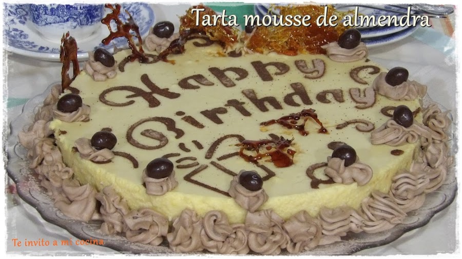 Y para la mousse necesitamos: 250 gr de nata (crema de leche) de montar, 250 gr de leche,150 gr de almendra molida ( se puede sustituir por avellana, nuez...), 4 huevos medianos o tres XL, 120 gr de azúcar,15 gr de maicena, 5 hojas de gelatina, una pizca de canela, un chorrito de licor y cacao `para espolvorear.