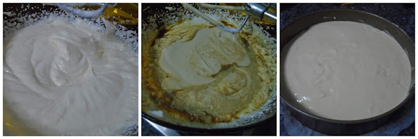 Por ultimo cuando tengamos una mezcla suave y cremosa añadimos la leche con la gelatina que teníamos reservada y seguimos batiendo hasta que se incorpore completamente y ya tendremos nuestro relleno listo, que lo incorporaremos en nuestro molde y lo llevamos a la nevera y lo dejaremos unas cuatro horas o mejor toda la noche hasta el día siguiente para desmoldarlo y decorarlo.