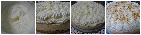 Antes de decorar nuestra tarta, montaremos la nata (crema de leche), ya sabéis que debe estar muy fría, con la ayuda de las varillas eléctricas vamos batiendo y cuando empiece a montar añadimos poco a poco el azúcar, una vez montada proseguimos a decorarla con la ayuda de una manga pastelera.