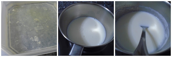 En ese transcurso de tiempo ya tendremos las hojas de gelatina ya se habrán hidratado, las escurrimos muy bien y se las incorporamos a la leche, removemos con la ayuda de una cuchara hasta que se disuelvan por completo una vez que se haya fundido con la leche retiramos el cazo del fuego que todavía esta caliente para que se vaya enfriando la leche.