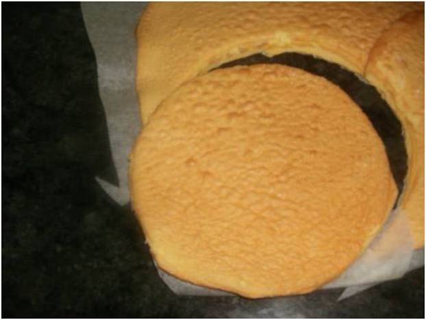 Cocemos en el horno precalentado a 170º en unos 10 minutos se cuece la plancha de bizcocho.
