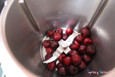 Trituramos las cerezas 30 segundos a velocidad 5. Debe quedarnos un puré fino.