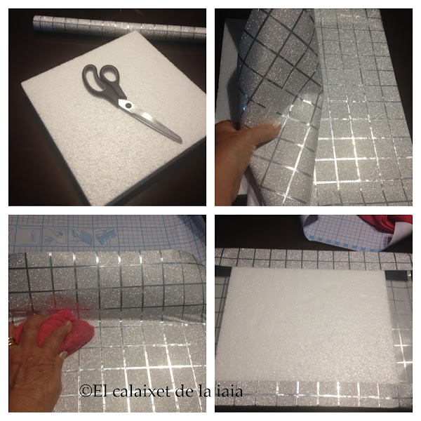 Para colocar la tarta una vez esté totalmente congelada, hice antayer una base de tarta cuadrada con ésta base de poliespan,