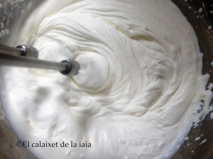 procederemos a montar la nata (crema de leche), para ello unas horas antes, ponemos la nata (crema de leche) en el frigo y un rato antes el recipiente y las varillas de montar en el congelador