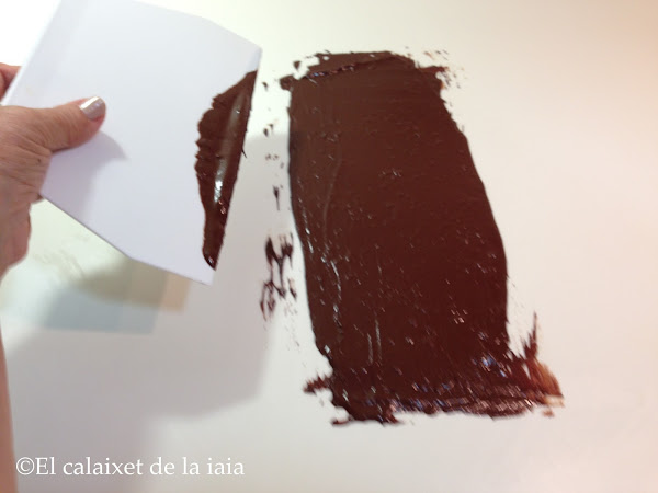 He puesto sobre la superficie el chocolate que he podido recuperar, del que quedó ayer derretido sobre la bancada