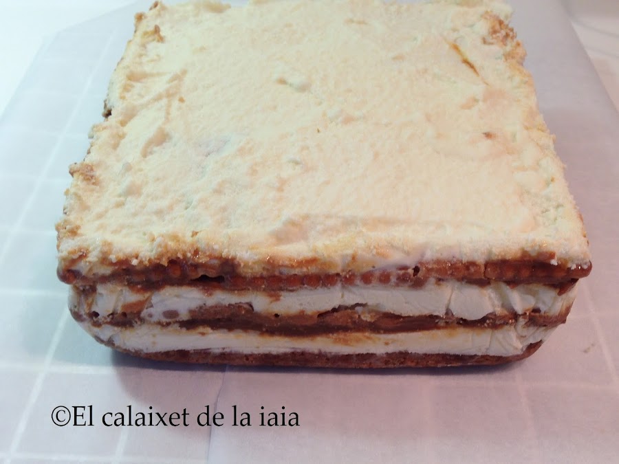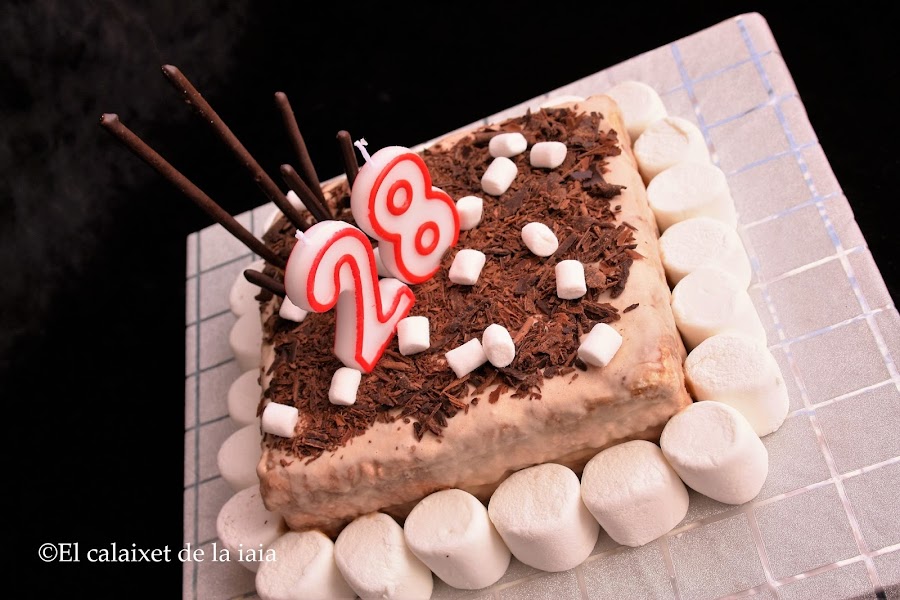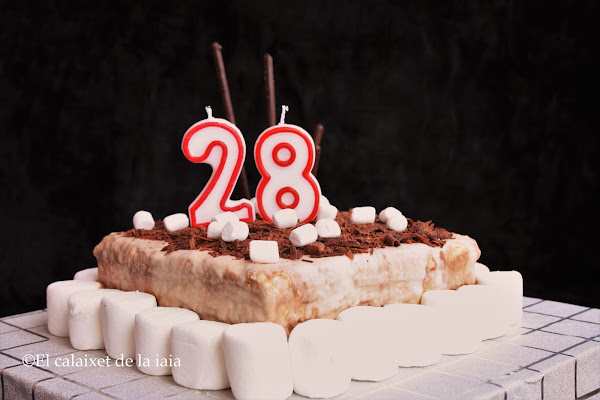 La comida era en un restaurant en medio de la huerta, una alquería, y ya había postre especial, y repostre jeje, pero como yo opino que un cumple sin tarta, no es un cumple, hice ésta congelada, para que aguantara bien.