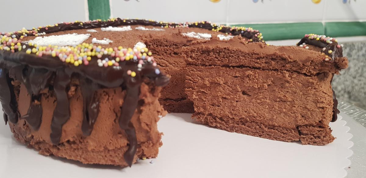 Como podéis ver en la foto, es una tarta muy chocolatosa , pero no tan empalagosa como parece… La he suavizado mucho añadiendo una base y una tapa de un bizcocho muy suave de chocolate, y en cuanto a la mousse la he hecho con chocolate negro y le he añadido menos azúcar para que no quede tan dulce. Además que como podéis observar he hecho una receta de mousse de chocolate sin huevo, por lo que aguantará más días en la nevera.