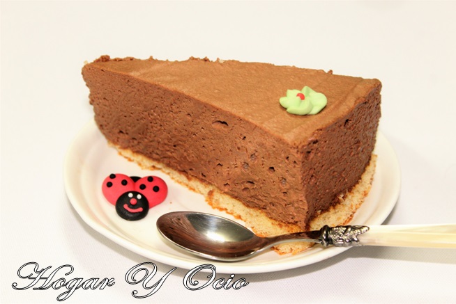 Para soportar la mousse utilicé una base de bizchoco comprada, normalmente las hago en casa pero tenía poco tiempo y opté por lo más rápido, tuve que adaptarla al molde recortando un poquito los bordes, de ahí que veais el bizcocho tan blanquito. También podéis ponerle la típica base de galleta mezclada con mantequilla (igual que la de esta tarta) y quedará estupenda. Bueno, no me enrollo más, ¡vamos con la receta!