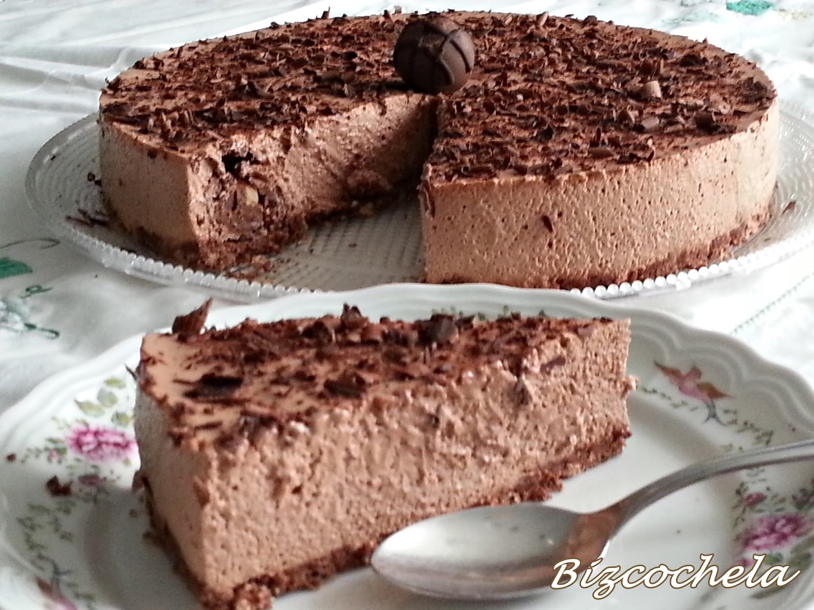 La verdad es que la mousse se puede servir en copas individuales, no hace falta la tarta, porque está tremenda, a mi me ha encantado.