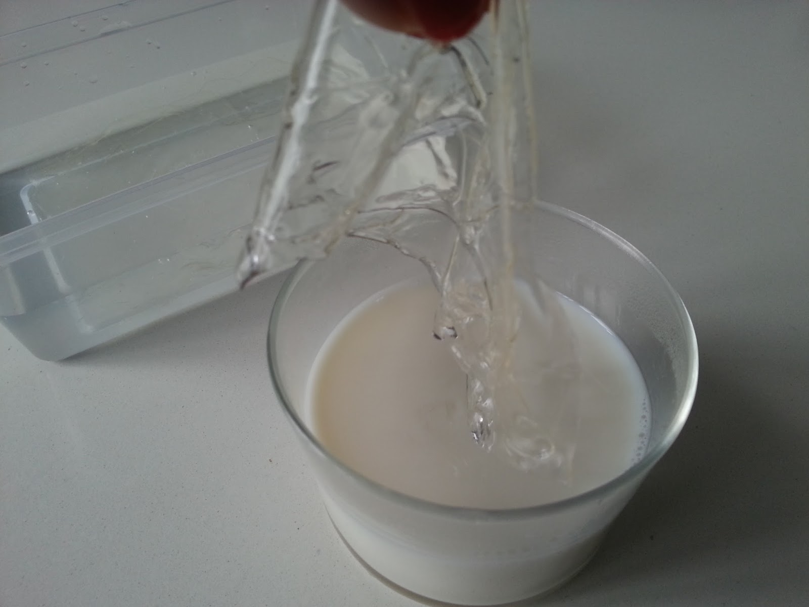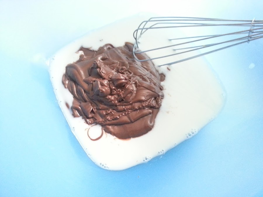 4. - Echamos la leche en un bol y le añadimos la nutella derretida y lo mezclamos.