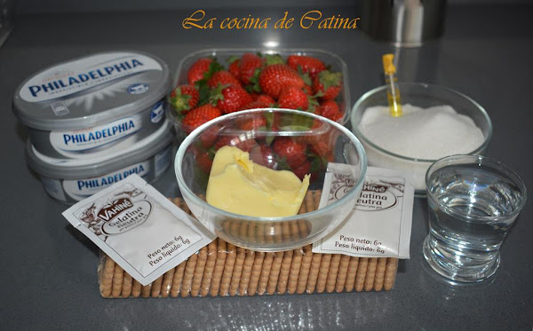 Hidratamos la gelatina con el agua tibia. Pesamos las fresas, las limpiamos y las trituramos con el azúcar hasta conseguir un puré.