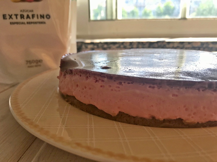Así que, ni corta ni perezosa, como no me apetecía nada encender el horno, me fui como loca a robarle a mi Juanan Cuuking una tarta de yogur de fresa que ya le había visto y me había enamorado. Una delicia sin horno, no se puede pedir más.