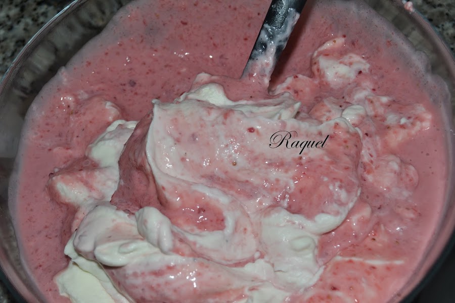 Vamos añadiendo la nata montada (crema de leche) poco a poco mezclandola con movimientos envolventes, para que no se baje.
