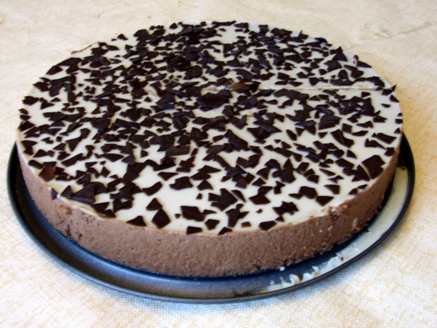 Añadir la mousse al molde, encima del bizcocho. Dejar cuajar en el frigorífico hasta que se endurezca.