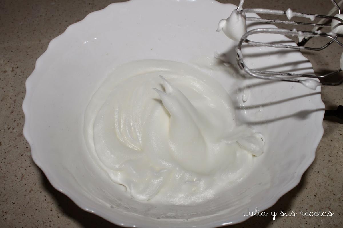 Mientras, montamos las claras a punto de nieve con una pizca de sal.