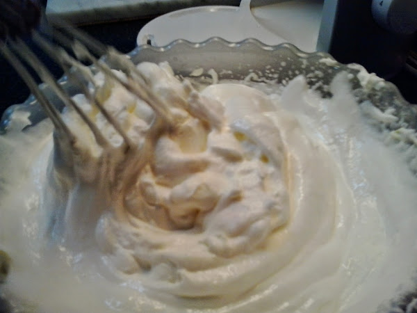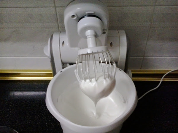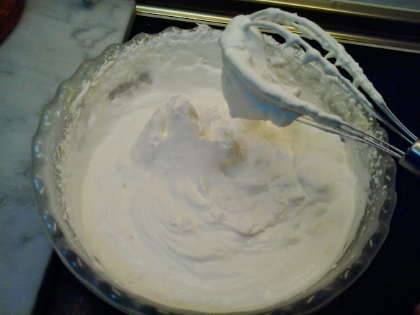 Agregar las claras montadas a punto de nieve que teníamos reservadas a la nata (crema de leche), con unas varillas manuales y con movimientos envolventes, es decir, de abajo hacia arriba, con cuidado para que no se bajen.