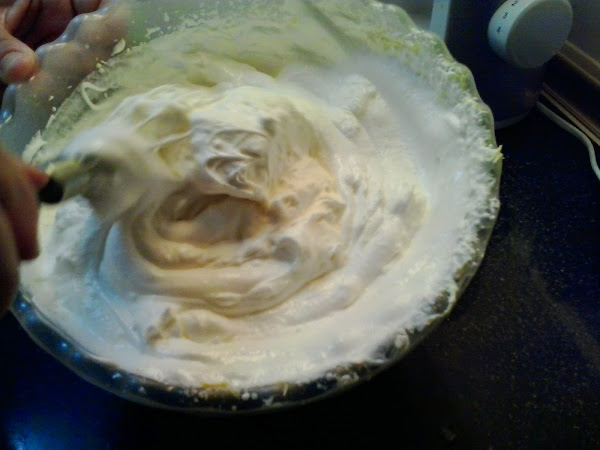 En un bol aparte montar la nata (crema de leche) líquida con la otra mitad del azúcar glass y la ralladura de un limón.