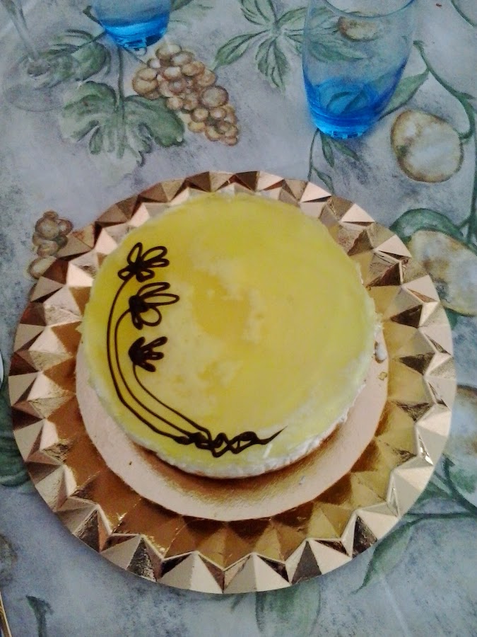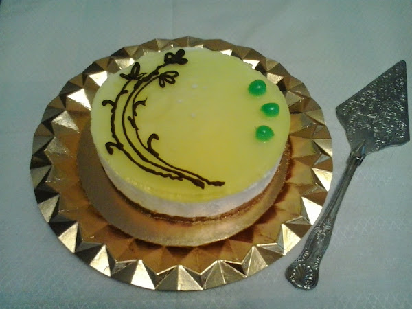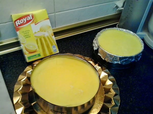 Para la decoración de la parte de arriba de la tarta, es tan sencillo como preparar un sobre de gelatina de limón ( seguir las instrucciones que vienen en el envase). Dejar enfriar hasta que esté a temperatura ambiente. Llegados a este punto, verter la gelatina de limón encima de la mousse que tenemos ya fría y volverlo a meter al frigorífico hasta que haya cuajado.(Mínimo unas dos horas).