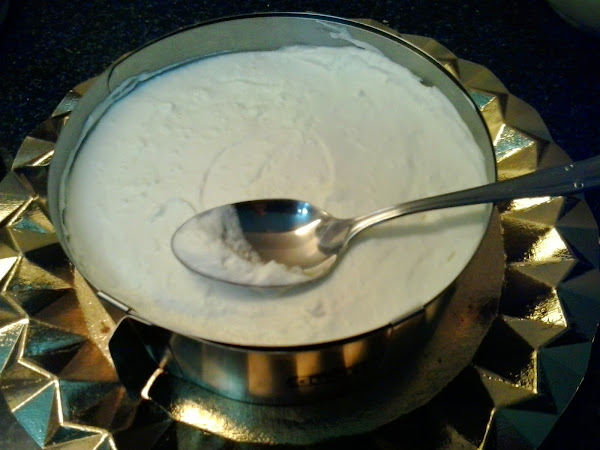 Vertemos la mousse en el molde que teníamos enfriando en la nevera. Nivelamos con una cuchara o una espátula y volvemos a meter al frío para que se cuaje.