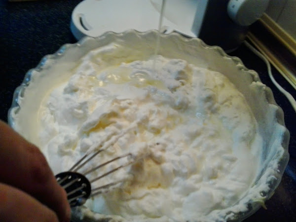Yo lo hago en dos veces y de manera muy suave. Después añadiremos la gelatina que hemos disuelto en el zumo de limón poco a poco y mezclando con cuidado.