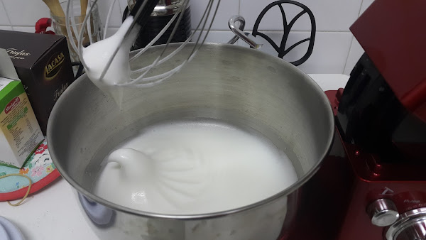 Montamos la nata (crema de leche) con el resto de azúcar glass.