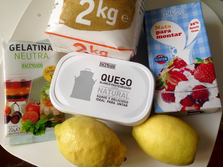 - ponermos a calentar el zumo de los dos limones y cuando rompa a hervir echamos las hojas de gelatina escurridas, dejamos que se deshagan y apartamos del fuego, dejamos templar y cuando esté templado lo agregamos a la anterior mezcla del queso con el azúcar y la ralladura de limón.