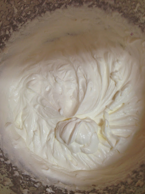 - la anterior mezcla la agregamos a la nata montada (crema de leche) y mezclamos con movimientos envolventes teniendo cuidado de que no se nos baje la nata (crema de leche)