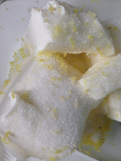 - Mezclamos el queso con el resto de azúcar y la ralladura de un limón y reservamos