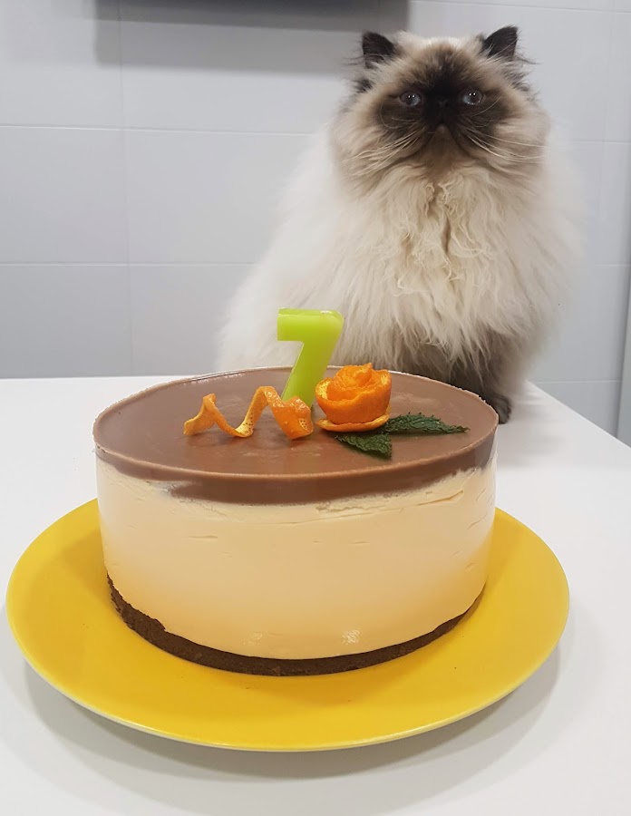 Este mes Sensei también decidió echarme una mano con la tarta. se ve que el tema de la repostería le ha gustado. me voy a tener que plantar hacer un canal de youtube del estilo del Cooking with de dog con la diferencia de que Francis, el caniche, se limitaba a contar las recetas mientras que Sensei se empeña en ayudar. Supongo que pensará que si una rata puede cocinar (nota: ver Ratatouille, película imprescindible), porqué un gato no va hacer repostería