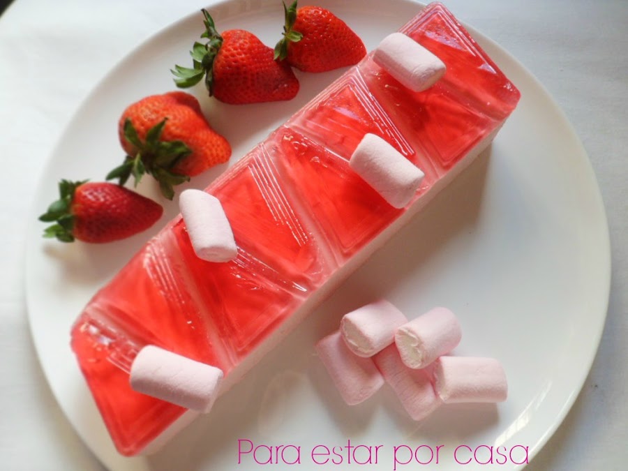 Prepararemos la gelatina de fresa siguiendo las instrucciones del fabricante que aparecen en alguno de los laterales del envase.