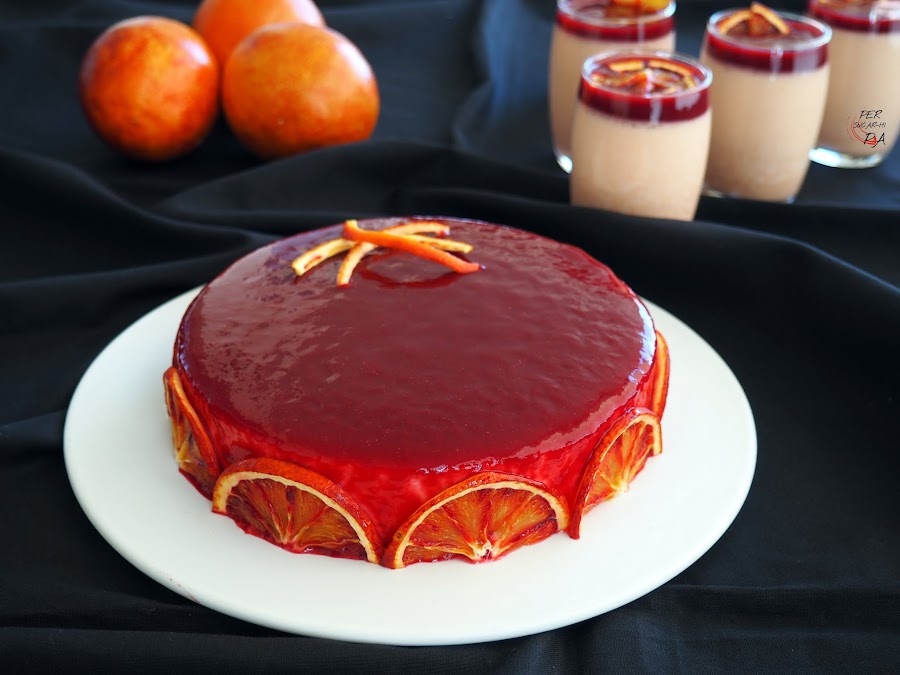 Cortar por la mitad las rodajas de naranja que hemos almibarado y secado e ir colocándolas alrededor de la tarta. Acabar la decoración a vuestro gusto.