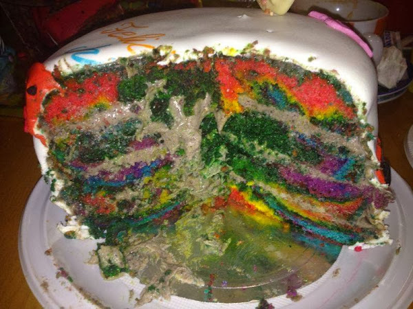 Preparé un bizcocho multicolor, el cual rellené de ganache de oreo y otro de chocolate, relleno de ganache y lacasitos.