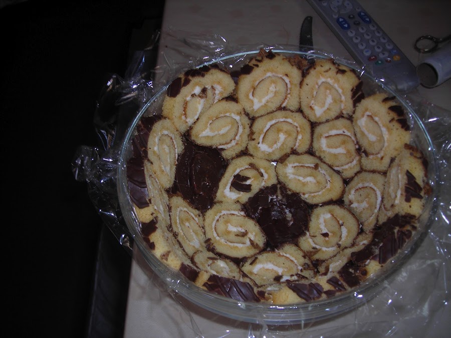 forrar un cuenco o ensaladeracon papel film...para poder desmoldar mejor y cubrir el fondo y las paredes con rodajas de brazo de gitano bien apretadas.