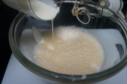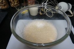 Por otro lado en un bol, ponemos los huevos y el Jarabe de Arce y batimos hasta que estén espumosos.