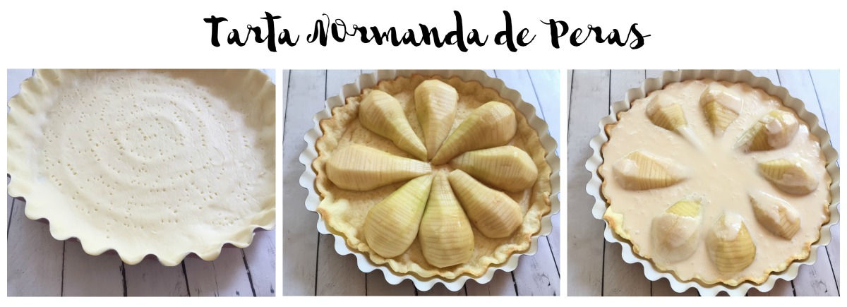 He hecho este pequeño collage para que veáis los tres pasos más importantes de esta tarta normanda de peras.