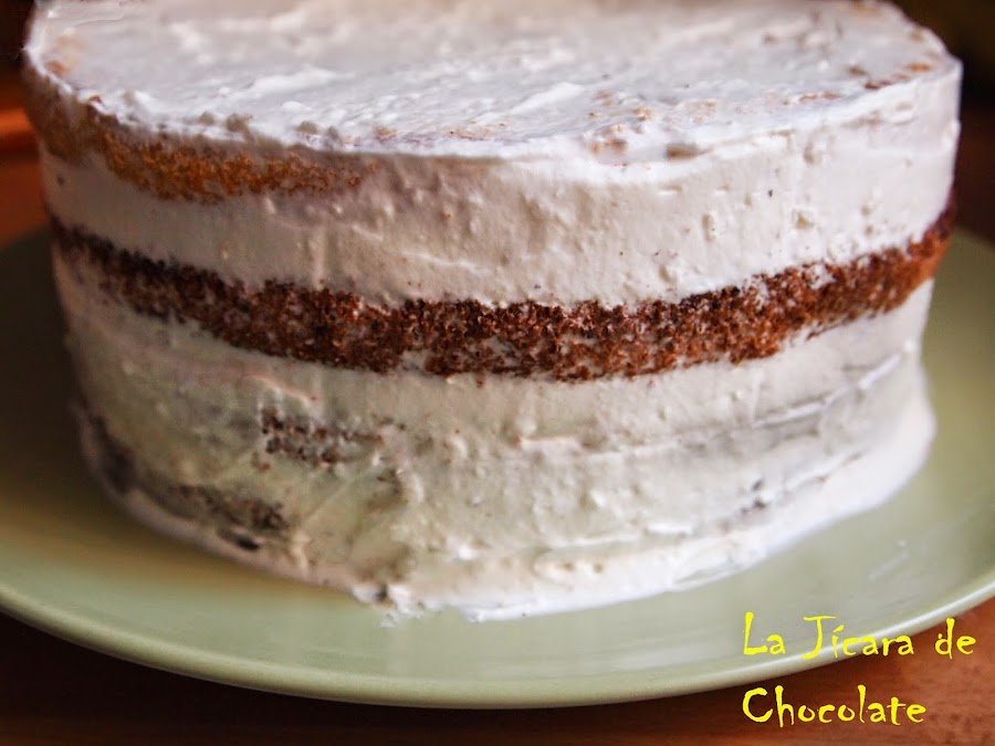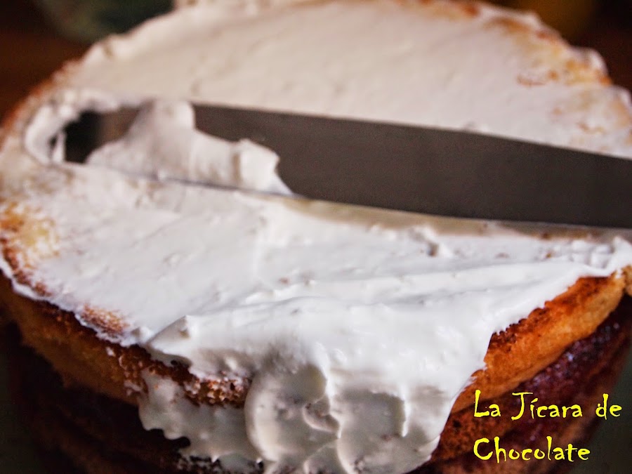 23. Cubrimos la tarta con una capa de crema con ayuda de una espátula.