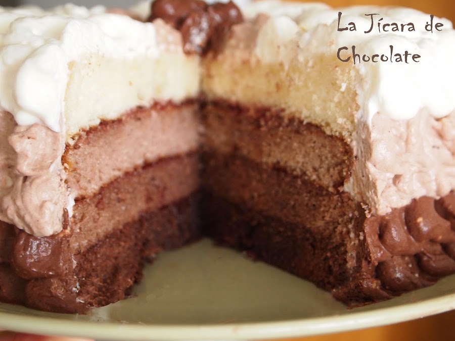 Este tipo de tartas se conocen con el nombre de Ombre Cake. Son tartas con varias capas de bizcocho cuyo color se va degradando.