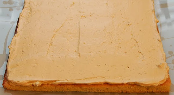 En este momento procedemos al montaje del pastel. Para ello partimos cada bizcocho en dos partes de manera que tendremos cuatro bases de tarta. Colocamos la primera base sobre el plato que usaremos para servirlo. Remojamos generosamente con el jarabe de café ayudándonos de un pincel y untamos un tercio de la crema de mantequilla de café usando una espátula o cuchillo.