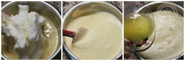 Le incorporamos las claras montadas, integramos y por último la mantequilla derretida y volvemos a integrar en nuestra masa.