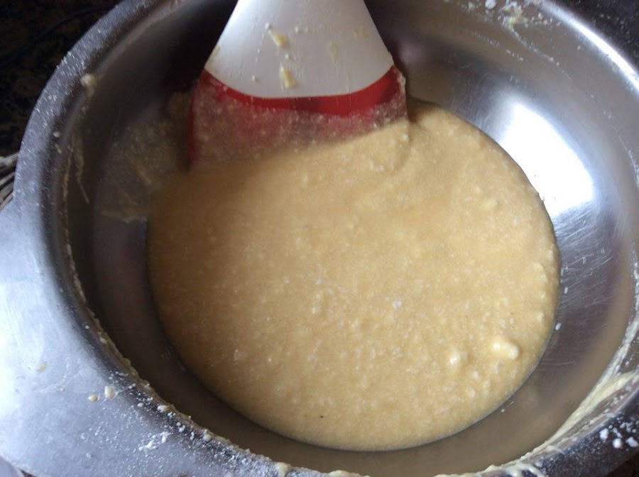 Ir añadiendo los 30 g de harina, tamizándola sobre el bol poco a poco.