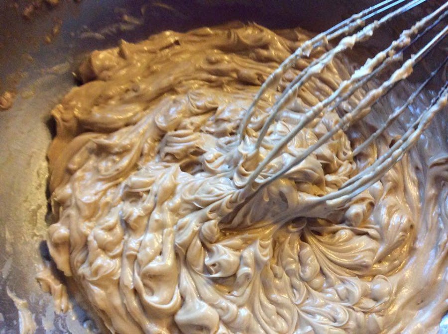 Con la crema de mantequilla de café, he tenido problemas, así que dejaré pendiente la receta para otra ocasión. Supuestamente, habría que hacer un almíbar con el azúcar, el agua y el café. Por otro lado, batir los huevos y las yemas hasta que espumasen e añadir poco a poco el almibar. Después, se seguía batiendo con las batidora con las barillas y se iba añadiendo poco a poco la mantequilla. A mí en ese momento, primero me quedó líquida, luego se me cortó.