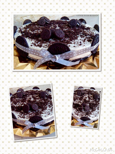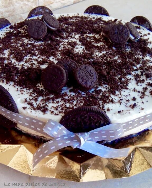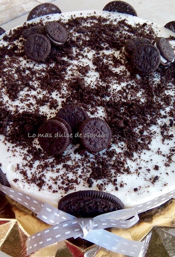 Cubrimos con la galleta triturada, colocamos algunas mini oreo y ponemos en los laterales alguna galleta de adorno.