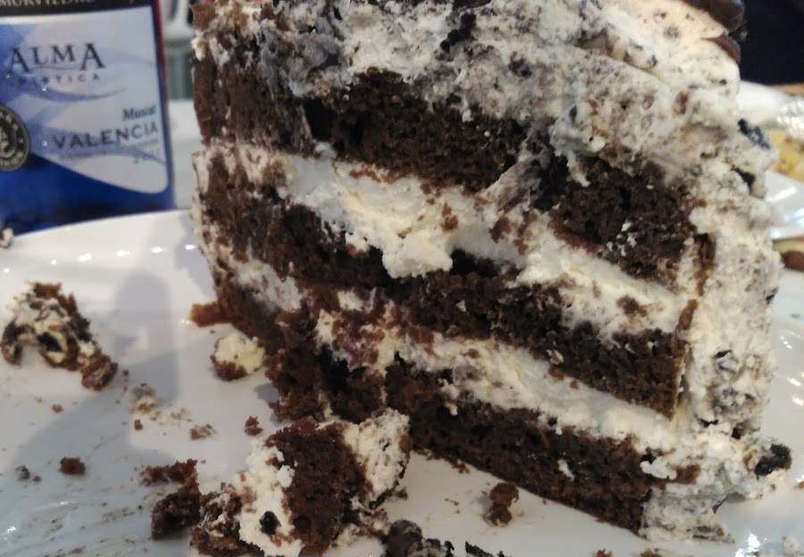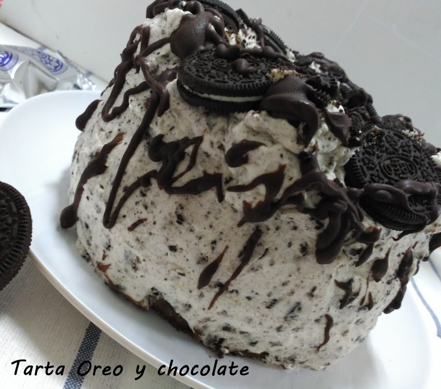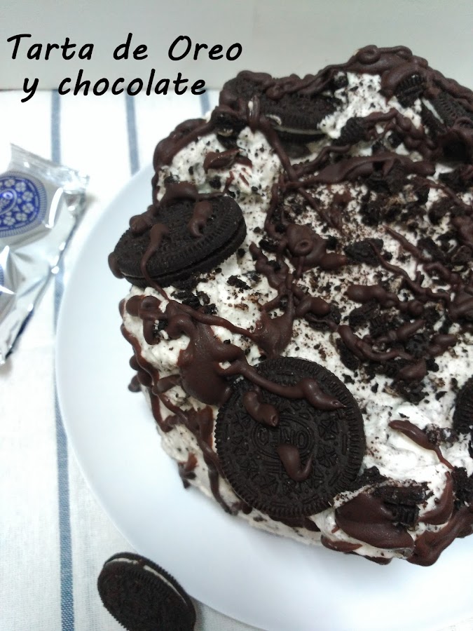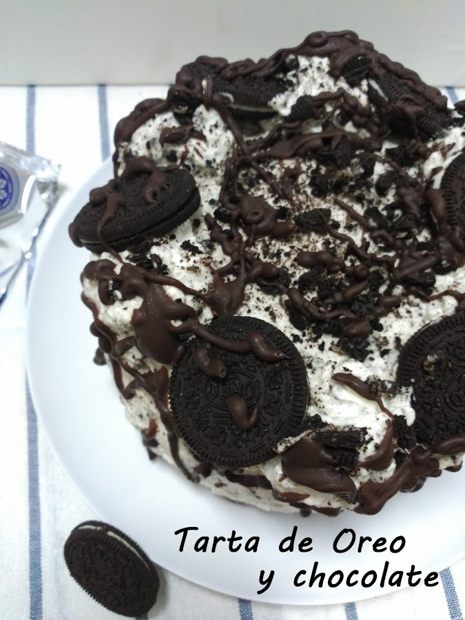 Cubrimos la tarta con una generosa capa.Adornamos con galletas Oreo.
