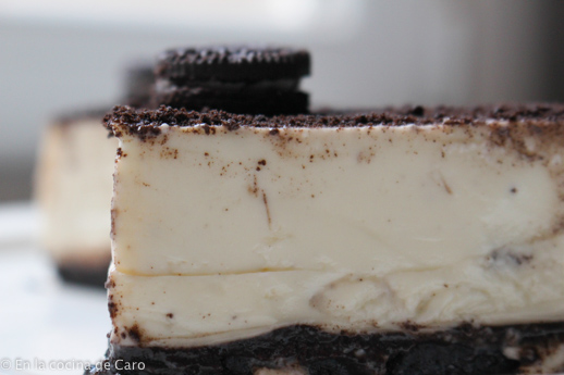 Cuando la crema esté cuajada, colocamos las galletas molidas por arriba y decoramos con las mini oreo.