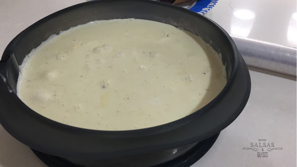 Es importante usar un buen molde desmontable ya que la mezcla es líquida y corremos el riesgo de que se nos desparrame, yo os pongo una foto del mio, estoy encantadísima con el, perfecto para este tipo de mezclas, mousse, tartas heladas ... (Os dejo un enlace donde podéis ver las características y el precio).