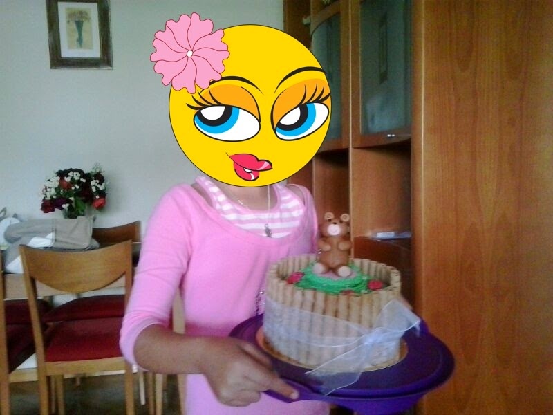 Carolina quedó encantada con la tarta y el oso fue mutilado y repartido entre sus amigas :-).