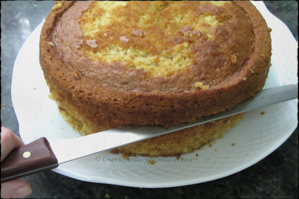Una vez haya enfriado el bizcocho dividirlo en tres partes.