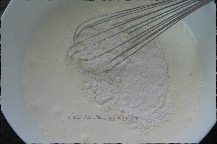 Añadir la harina e incorporarla bien, después agregar la leche y seguir mezclando.